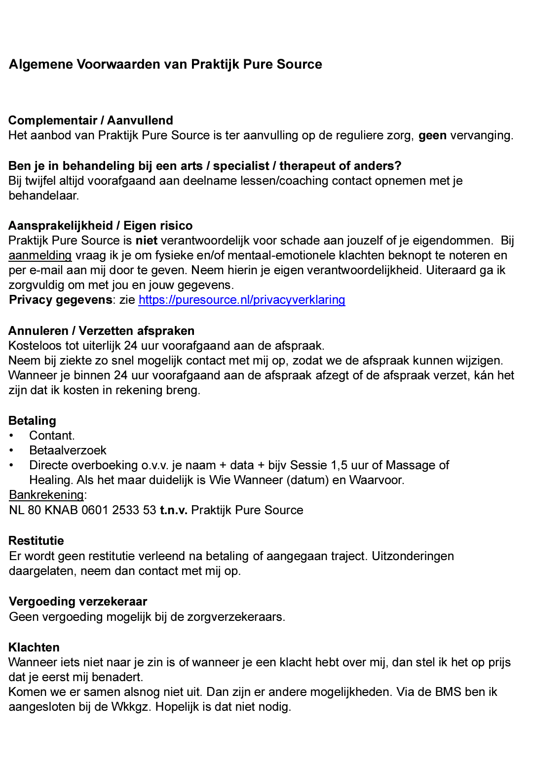 Hieronder een foto van de Algemene voorwaarden. Juni 2025.